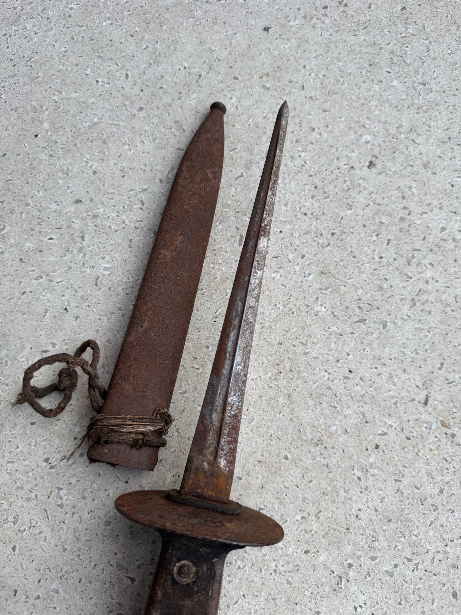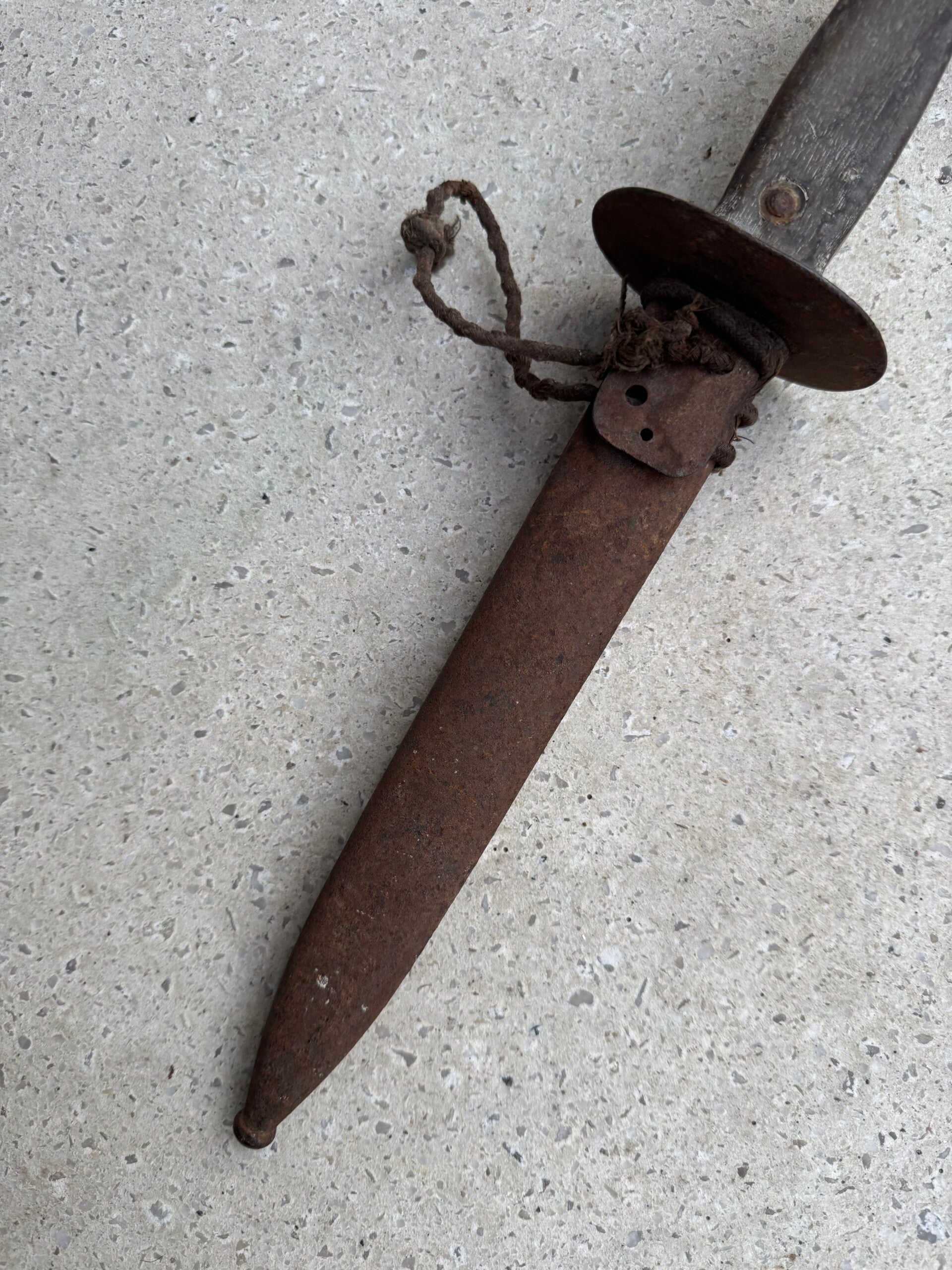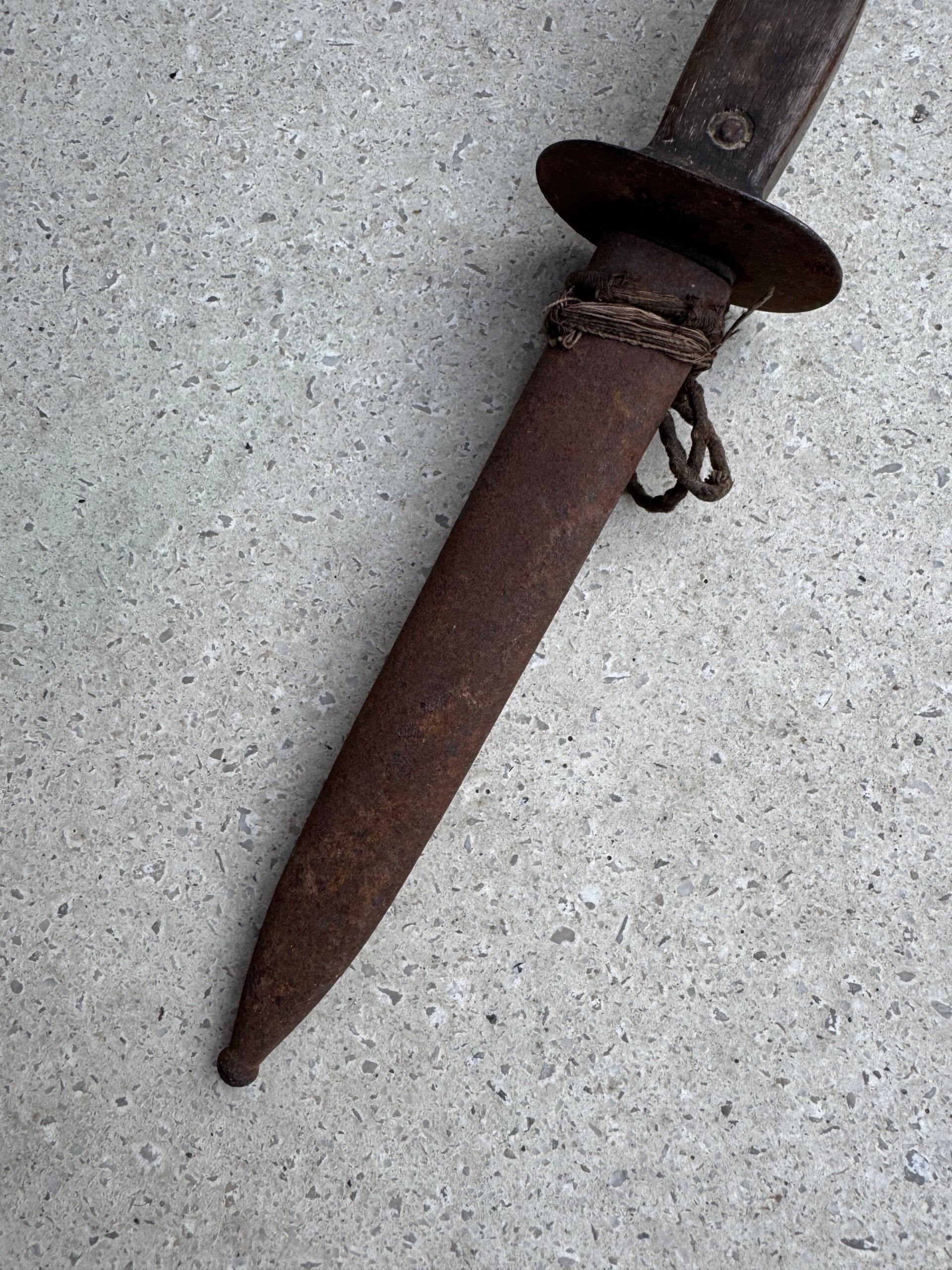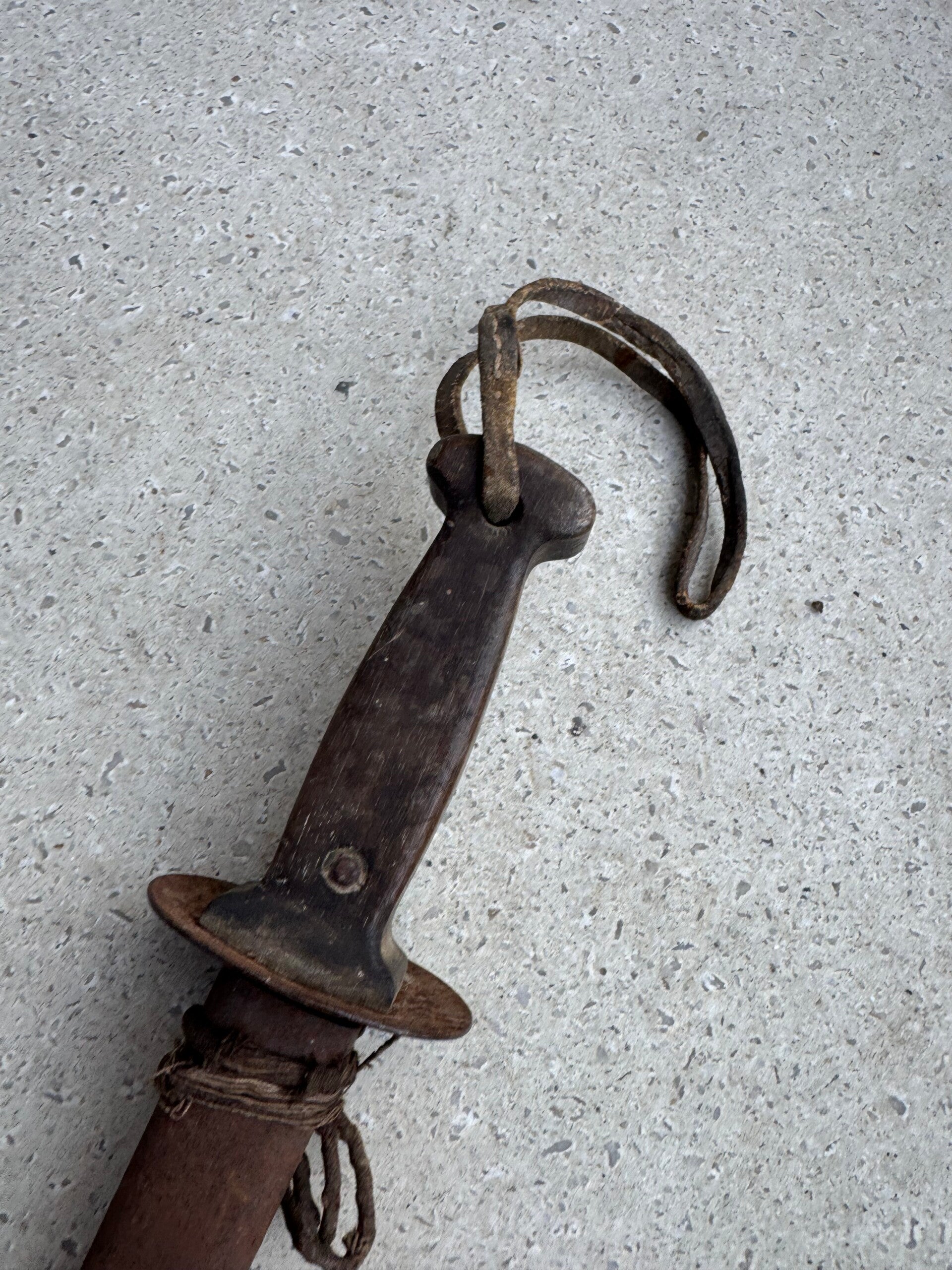 wo1 Belgische loopgravendolk met originele lederen koord.