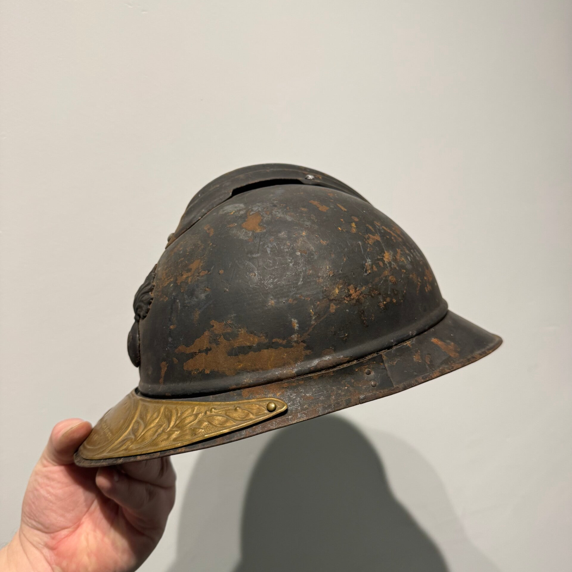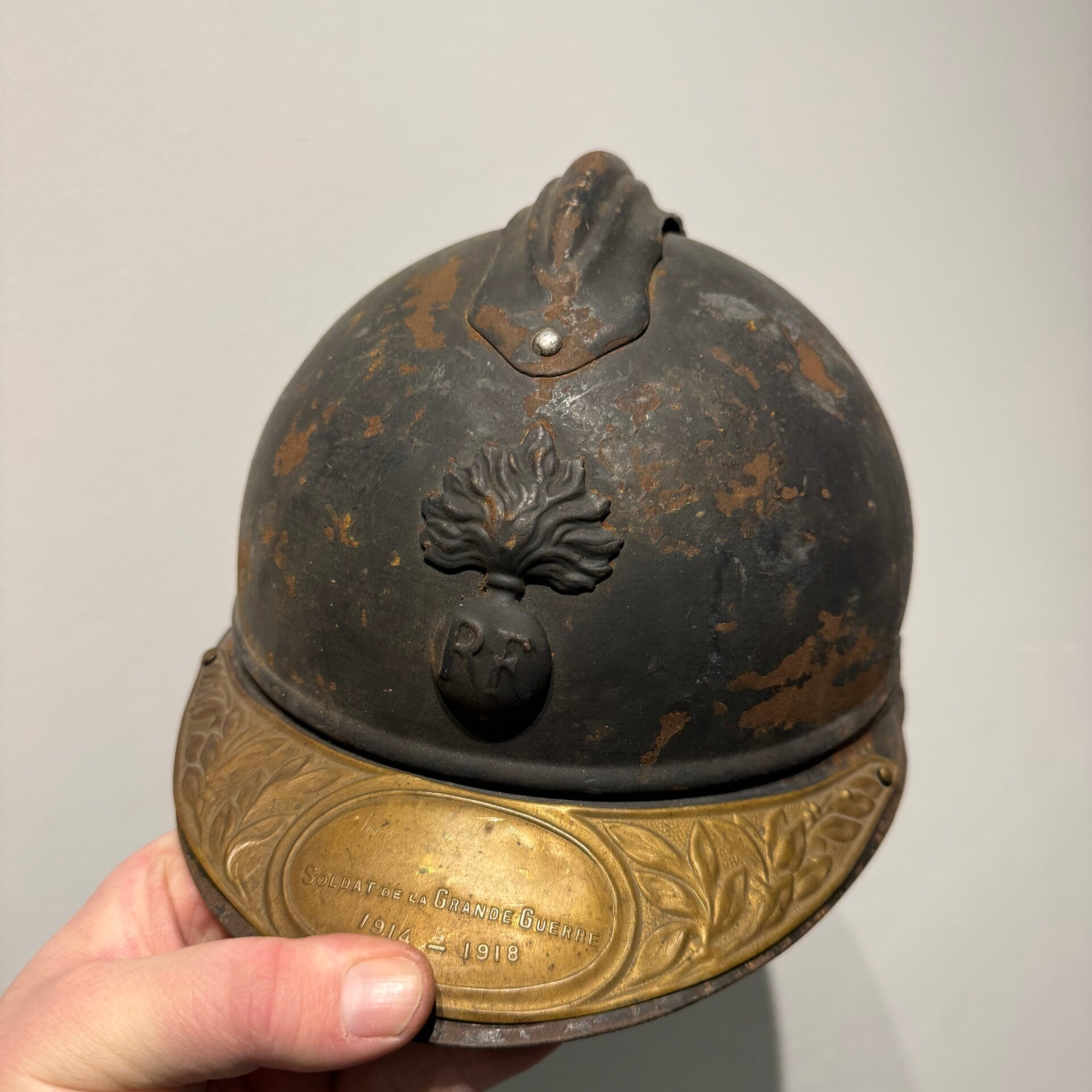 Wo1 Franse helm met herdenkingsplaat
